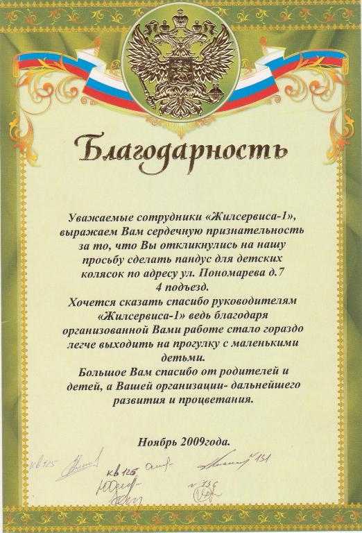 Первый Отзывы Благодарности